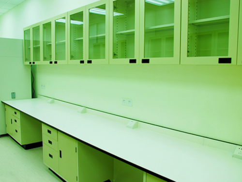 6.中央臺中部(柜體背面)為設備夾層,用于隱藏從地面預留或天花板引出功能柱到實驗臺面的水、電、氣管路。且每個實驗室后面均設有活動維修板,拆裝方便。